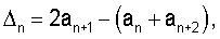 Затем от вычисленного амплитудного спектра an берется конечная разность второго порядка n (фиг.8 и 9).
