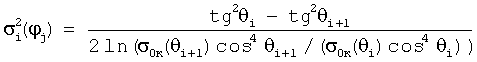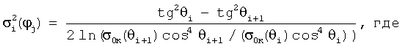 i и i+1 – углы падения для двух последовательных “i”-ой и “i+1”-ой элементарных ячеек вдоль направления зондирования (азимутального угла j) см. фиг.4; 0к ( i) и 0к ( i+1) – скорректированные сечения обратного рассеяния этих ячеек соответственно, j – номер азимутального направления, под которым наблюдается каждая элементарная ячейка.