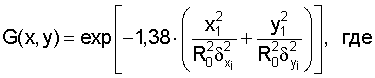 и – ширина диаграммы направленности на уровне 0,5 по осям X1 и Y1 соответственно, R0 – высота полета спутника. Для коррекции умножают мощность отраженного сигнала в “i”-ой элементарной ячейке (сечение обратного рассеяния 0 ( i)) на коэффициент, связанный с диаграммой направленности антенны 1. Формула перерасчета имеет следующий вид: