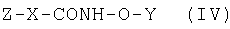 где A, R1, R2 и Х имеют значения, указанные выше, с гидроксиламином. Обычно эту реакцию проводят в две стадии в одной колбе. На первой стадии активируют карбоксилат формулы V. Эту реакцию проводят в инертном растворителе или разбавителе, например, в дихлорметане, диоксане или тетрагидрофуране, в присутствии активирующего агента. Пригодным реакционно-способным производным кислоты является, например, ацилгалогенид, например ацилхлорид, полученный при взаимодействии кислоты с хлорангидридом неорганической кислоты, например с тионилхлоридом; смешанный ангидрид, например ангидрид, полученный взаимодействием кислоты с хлорформиатом, таким как изобутилхлорформиат; активированный сложный эфир, например, полученный при взаимодействии кислоты с фенолом, таким как пентафторфенол; сложным эфиром, таким как пентафторфенилтрифторацетат, или со спиртом, таким как метанол, этанол, изопропанол, бутанол или N-гидроксибензотриазол; ацилазид, например азид, полученный при взаимодействии кислоты с азидом, таким как дифенилфосфорилазид; ацилцианид, например цианид, полученный при взаимодействии кислоты с цианидом, таким как диэтилфосфорилцианид; или продукт реакции кислоты с карбодиимидом, таким как дициклогексилкарбодиимид. Реакцию проводят при температуре от -30°С до 60°С, обычно при 0°С или ниже. На второй стадии к раствору добавляют гидроксиламин при температуре активации и температуру медленно повышают до комнатной температуры.