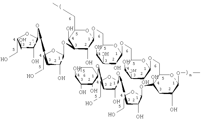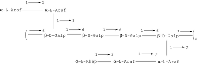 где n=7-8 и где Araf означает арабинофуранозу, Galp означает галактопиранозу и Rhap означает рамнопиранозу.