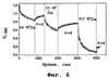 На фиг.6 проиллюстрирована кинетика сжатия адгезионного гидрогеля PVP-PEG при постоянной сжимающей нагрузке и восстановления после снятия нагрузки. Значение h означает расстояние (мм) между верхней и нижней пластинами плоскопараллельного дилатометра, которое равно толщине образца.