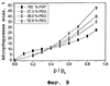 На фиг.9 показаны изотермы поглощения водяного пара для PVP и его смесей с PEG-400 при комнатной температуре.