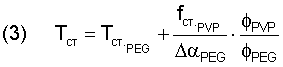 (ii) расчета предсказываемой температуры стеклования Тст.пред для каждой композиции при помощи уравнения Фокса (1)