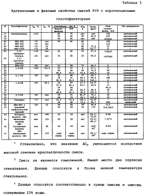 (1) по существу неводную, чувствительную к давлению адгезионную матрицу гидрофильного полимера, имеющего температуру стеклования Тст. пол, и комплементарный короткоцепной пластификатор с концевой гидроксильной или карбоксильной группой, имеющий температуру стеклования Тст. пл и способный образовывать водородную или электростатическую связь с гидрофильным полимером, причем массовое соотношение гидрофильного полимера и комплементарного короткоцепного пластификатора выбирают с учетом достижения заранее определенного отклонения (а) действительной температуры стеклования Тст. факт композиции от (b) предполагаемой температуры стеклования Тст. пред композиции, рассчитанной при помощи уравнения Фокса, и