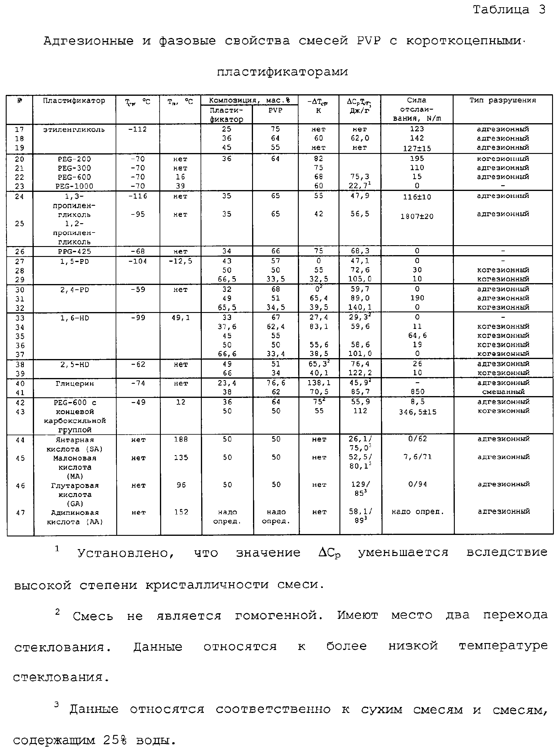 В некоторых случаях, например, когда необходима меньшая степень адгезии, выбранная массовая доля пластификатора может не соответствовать максимальному отрицательному отклонению Тст.факт от Тст.пред, представляя собой какое-либо другое заранее определенное отклонение Тст.факт от Тст.пред. Поэтому в соответствии с другим аспектом настоящего изобретения предлагается способ получения адгезионной композиции с заранее определенной степенью адгезии, который заключается в том, что: