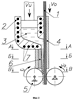 на фиг.4 – разрез В-В на фиг.1: 1 – полоса листового материала, 3 – расплав материала, 8 – закристаллизовавшаяся оболочка.