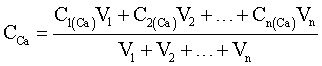 1. Определяют концентрацию ионов сульфата (SO4 ) и ионов кальция (Са) после смешения продукции со всех скважин по следующей зависимости: