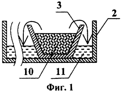 Сущность изобретения поясняется чертежами, где на фиг.1 показана работа устройства на примере единичной емкости с осушаемым продуктом, находящейся в вакуумной камере; на фиг.2 показана общая технологическая схема варианта устройства жидкостного концентрирования и сублимационной сушки.