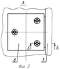 1. Транспортно-пусковое устройство, содержащее, как минимум, одну направляющую, опорные диафрагмы с базовой плоскостью и кронштейн, закрепленный на одной из диафрагм, на котором с помощью регулировочных винтов и фиксаторов параллельно базовой плоскости установлена контрольная площадка, отличающееся тем, что каждый из, как минимум, трех регулировочных винтов ввинчен в глухое отверстие кронштейна, соосно которому в контрольной площадке выполнено ступенчатое отверстие с верхней резьбовой частью, а нижней – без резьбы и меньшего диаметра, головка винта прижата к уступу ступенчатого отверстия фиксатором, ввинченным, в свою очередь, в резьбовую часть ступенчатого отверстия, при этом в винте и фиксаторе выполнены сквозные осевые отверстия, а на резьбовой части винта с заглублением в глухое отверстие кронштейна выполнена наружная проточка с, как минимум, одним радиальным отверстием, в фиксаторе же проточка выполнена как продолжение головки винта, а на нижнем торце фиксатора выполнена, как минимум, одна радиальная канавка, при этом полость, образованная отверстиями, канавками и проточками, заполнена самоотверждаемой литьевой композицией, например эпоксидным компаундом, причем уровень верхнего торца фиксатора и уровень композиции не превышают уровня контрольной плоскости контрольной площадки.