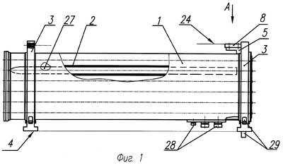 Как пример конкретного исполнения представлено транспортно-пусковое устройство 1, содержащее пакет параллельных трубчатых направляющих 2, предназначенных для пуска ракет 27, закрепленных в двух опорных диафрагмах 3, нижние грани которых образуют базовую плоскость 4, для установки на прилегающую базовую плоскость стационарной пусковой установки. Контроль параллельности направляющих 2 и базовой плоскости стационарной пусковой установки осуществляется контролем параллельности контрольной плоскости 24 контрольной площадки 8 и прилегающей базовой плоскости пусковой установки. Транспортно-пусковое устройство содержит элементы электрической 28 и механической 29 стыковки с пусковой установкой.