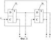 В фазовом расщепителе 24 (фиг.3) тактовые входы С первого D-триггера 35 и второго D-триггера 36 подключены к выходу «к» триггера 23. Прямой выход первого D-триггера 35 соединен с входом D второго D-триггера 36 и, таким образом, образован первый выход «д» с фазовым сдвигом 0° относительно выхода «к». Прямой выход второго D-триггера 36 выполнен как второй выход «е» с фазовым сдвигом 90°. Инверсный выход первого D-триггера 35 выполнен как третий выход «ж» с фазовым сдвигом 180°. Инверсный выход второго D-триггера 36 соединен с входом D первого D-триггера 35 и выполнен как четвертый выход «з» с фазовым сдвигом 270° относительно входа «к» фазового расщепителя 24.