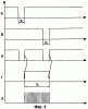 После прохождения сигнала с выхода второго входного усилителя 22 через первый формирователь импульсов 23′ на его выходе образуются импульсы длительностью 1 (фиг.4, а). При прохождении сигнала с выхода модулятора 15 через второй формирователь импульсов 23” на его выходе формируются импульсы длительностью 2, равной 1 (фиг.4, б). В результате с выхода логического устройства И 24 поступает последовательность импульсов длительностью 1 и 2 (фиг.4, в). На выходе D-триггера 25 формируются импульсы длительностью 3, передний фронт которых соответствует заднему фронту очередного импульса длительностью 1, а задний фронт соответствует заднему фронту очередного импульса длительностью 2 (фиг.4, г). Таким образом, фазовый сдвиг между сигналами с выходов второго входного усилителя 22 и модулятора 15 преобразуется в интервал времени, определяемый длительностью импульсов 3 и пропорциональный фазовому сдвигу. В JK-триггере 26 производится заполнение импульса длительностью 3 импульсами частотой fг от генератора 27 тактовых импульсов (фиг.4, д). Количество импульсов частотой fг на выходе JK-триггера 26, пропорциональное фазовому сдвигу, является мерой угловой скорости . Таким образом осуществляется преобразование угловой скорости в дискретный сигнал, точность преобразования которого ограничивается только частотой fг генератора 27 тактовой частоты.