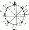 Выход «а» (фиг.2) системы первичных датчиков колебаний 7′, 7” подключен ко входу первого входного усилителя 12, к выходу которого подключена входящая в систему управления вибрацией цепь фазового сдвига, состоящая из последовательно включенных первого фазового демодулятора 13, первого корректирующего фильтра 14, модулятора 15 и выходного усилителя 16, к выходу «б» которого подключена система вибраторов 5′, 5”. К выходу первого входного усилителя 12 также подключена входящая в вышеуказанную систему управления вибрацией цепь фазовой автоматической подстройки частоты, состоящая из последовательно включенных второго фазового демодулятора 17, второго корректирующего фильтра 18, к выходу которого подключен вход управляемого напряжением генератора 19. Выход источника 20 постоянного напряжения подключен к управляемому напряжением генератору 19, к выходу которого подключен вход фазового расщепителя 21.