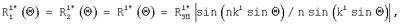 R1*( )=R2*( )=R( )=RЗП|[sin(nksin )]/[nsin(ksin )]| (см. Фиг.1, 2 сплошная кривая), [13, с.214, АВ (VI. 49) и (VI. 50) с.198],