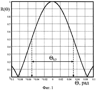 0,5 – ширина НХН ЛГ на уровне 0,5 при приеме сигнала на частоте f, которая определяется по графику НХН, описанной АВ для R( ), см. Фиг.1 и 2 (сплошную кривую);