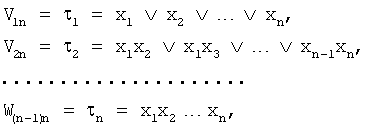 где 1, …, n есть простые симметричные булевы функции (см. стр.126 в книге Поспелов Д.А. Логические методы анализа и синтеза схем. М.: Энергия, 1974).