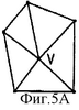 Из Фиг. 5A видно, что вершина v является внутренней вершиной, так как у нее имеется пять соседних вершин, и пять треугольников включают вершину v. Однако вершина на Фиг. 5B является краевой вершиной, так как у нее имеется пять соседних вершин, но только четыре треугольника включают вершину v.
