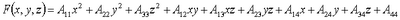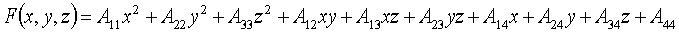 F(x, y,z)=А11х2+А22у2+A33z2+А12ху+A13xz+A23yz+А14х+А24у+A34z+А44,