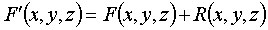 где F(x,y,z) обозначает функцию возмущений, А11, А22, А33, A12, а13, А23, A14, А24, А34 и А44 обозначают коэффициенты функции возмущений, и х, у и z обозначают оси в трехмерном пространстве соответственно.