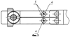 При перемещении (врубании) ножевого контакта 1 между пластинами 2 происходит замыкание электрической цепи, состоящей из двух пар упругих пластин 2 и торцевых поверхностей ножа 1. Пластины 2 поджаты к ножу 1 с одной стороны и к жестко закрепленным на оси 3 ограничителям отброса 4 – с другой. Усилие поджатия определяется расстоянием от оси 3 до контактного пятна на ноже 1 и расстоянием между ограничителями отброса 4.