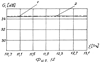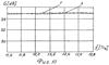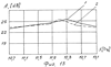 на фиг.13 – приведены зависимости в диапазоне частот развязки по поляризации плоской антенной решетки с одиночным излучателем в виде двухзеркальной зонированной антенны с замедляющей структурой для сигналов круговой поляризации (кривая 1 – для правой круговой поляризации, кривая 2 – для левой круговой поляризации).