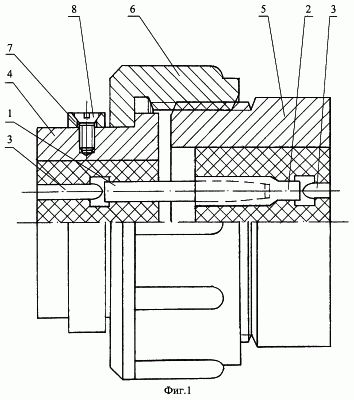 Корпус 4 вилки соединен с корпусом 5 розетки посредством втулки 6. Корпуса 4, 5 и втулка 6 выполнены из диэлектрического материала, например пластмассы. Крупный шаг ходовой резьбы (резьбового соединения) между втулкой 6 и корпусом 5 розетки, например, трапецеидальной резьбы, ГОСТ 9484-81: