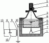 2. Устройство для получения униполярно заряженного газа с использованием тепловой энергии, содержащее изолированный паровой котел с проводящей жидкостью, выпускной клапан, нагреватель, конденсатор и источник электрической энергии, отличающееся тем, что, с целью получения униполярно заряженного газа с высокой плотностью объемных зарядов, в жидкости размещается электрод, соединенный через диод со вторичной обмоткой трансформатора, через первичную обмотку которого разряжается конденсатор.
