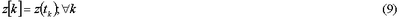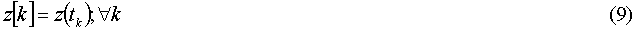 В одном из вариантов осуществления дополнительный блок 308 дискретизации создает дискретную версию z[k] формы сигнала z(t) путем дискретизации формы сигнала z(t) в точках tk идеальной дискретизации: