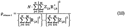 где общая-1 – первая общая точность модуляции, j – индекс, обозначающий элементарный элемент сигналов, N – предел суммирования, обозначающий число элементарных элементов, k – индекс, обозначающий дискрету в элементарном элементе, М – предел суммирования, обозначающий число дискрет в элементарном элементе, Zj,k=z[M(j-1)+k] -k-я дискрета в j-м элементарном элементе фильтрованного сигнала, и Rj,k=r[M(j-1)+k] – k-я дискрета в j-м элементарном элементе идеального сигнала.