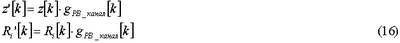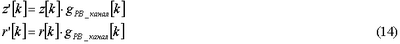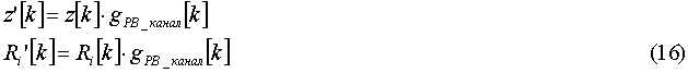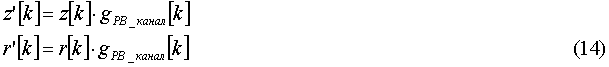 Затем реальную форму сигнала z[k] и идеальную форму сигнала r[k] умножают на функцию gРВ_канал[k] для выработки конкретных РВ_каналов: