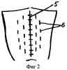 При невозможности ее выполнения производят аллопластику дефекта. В качестве аллотрансплантата используют твердую мозговую оболочку, подвергшуюся консервации в 0,5% растворе формалина при температуре +4°С в течение одного месяца, что необходимо для получения ее эластичности, стерильности и прочности. Твердая мозговая оболочка подшивается к апоневрозу узловыми капроновыми швами (4.0) на расстоянии 0,8-0,9 см друг от друга. Всего накладывается от 10 до 20 швов. Это обеспечивает герметичное закрытие дефекта передней брюшной стенки. С органами брюшной полости контактирует гладкая поверхность ТМО, что исключает возникновение спаек (фиг.1). Кожу над дефектом ушивают наглухо. Для уменьшения ее натяжения и предупреждения некротизирования в шахматном порядке по обе стороны от раны выполняются насечки длиной 0,7-0,8 см в количестве от 10 до 15 на расстоянии не менее 2,5-3 см от краев раны (фиг.2). Это позволяет также избежать инфицирования и сохранить эластичность кожи передней брюшной стенки.