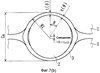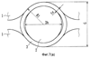 Но число оправок 2, которые может иметь данный завод, ограниченное, и на практике с помощью одной и той же оправки 2 с определенным наружным диаметром изготавливаются несколько видов стальных труб 3 с разной толщиной стенки. Например, когда труба изготавливается с помощью оправки 2, наружный диаметр которой отличается от идеального наружного диаметра, и каждый конец обжимающих валков закрыт в одинаковой степени, поэтому расстояние между вершинами калибра валков 1 может стать равным Ga, согласно Фиг.7(b), поскольку центр радиуса R1 смещается от центра калибра и R1 увеличивается на величину R1-Ga/2, а толщина t( ) стенки будет представлена выражением t( )=R1-(2R1-Ga) cos( )/2-(Db/2).