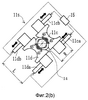 Фиг.1 схематически иллюстрирует производственную линию, содержащую непрерывный стан для прокатки бесшовных труб на оправке, имеющий совокупность обжимных клетей, каждая из которых оборудована парой калиброванных валков, сообразно расположенных. Фиг.2(а) показывает клеть №4 в непрерывном стане для прокатки бесшовных труб на оправке, изображаемом на Фиг.1, Фиг.2(b) иллюстрирует клеть №5 в непрерывном стане для прокатки бесшовных труб на оправке, и Фиг.2(с) иллюстрирует направления каналов в измерителе толщины горячей стенки в непрерывном стане для прокатки бесшовных труб на оправке.