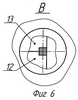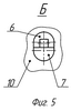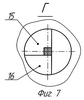 Штамп (см. фиг.3 и 4, вариант 2 исполнения 1) содержит узел деформирования, состоящий из нескольких деталей, а именно, из двух деталей 6 и 7. Детали 6 и 7 выполнены в виде конической вставки. При этом деталь 6 выполнена с формой, ограниченной двумя пересекающимися плоскостями И и К и отсекаемыми этими плоскостями части конической поверхности Л. Причем плоскость К параллельна оси симметрии конической поверхности Л вставки, а плоскость И расположена под углом к этой же оси симметрии. Деталь 7 выполнена с формой, ограниченной конической поверхностью Л и двумя пересекающимися плоскостями И1 и К1, отрезавшими от нее кусок металла, идентичный по форме и размерам детали 6. Угол между пересекающимися плоскостями может быть равным или больше 90°. В детали 6 на пересекающихся плоскостях И и К выполнены пазы, которые вместе с частями поверхностей И1 и К1 детали 7 образуют входной 8 и выходной 9 каналы одинакового поперечного прямоугольного сечения. Коническая вставка, состоящая из деталей 6 и 7, запрессована в бандаж 10 со стороны приложения к пресс-штемпелю 11 рабочего усилия Р. Пресс-штемпель 11 введен в верхнюю часть входного канала 8. Детали 1 (см. фиг.1) и 6 (см. фиг.3) могут быть выполнены из двух частей каждая, например из частей 12 и 13 (см. фиг.6) или частей 15 и 16 (см. фиг.7).