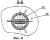 Для обеспечения соединения балки 4 с опорой 6 на ней выполнены сквозные отверстия 16 для пропускания штока 13 с захватом 15, причем форма сечения и ширина такого отверстия соответствуют наибольшему сечению захвата 15 в плоскости, ортогональной оси штока 13 (в частности, высоте шарового слоя, как представлено на фиг.4). Для соединения балки 4 с опорой 6 упор штока – шаровая головка 14 должна обеспечить перекрытие отверстия 16 в балке 4, а шток 13 должен быть повернут вокруг оси так, чтобы вместе с ним повернулся и захват 15 с обеспечением фиксации положения балки 4. На фиг.4 захват 15 в виде одного элемента в форме шарового слоя повернут на 90 градусов (отмечено штриховкой) от исходного положения в положение соединения балки 4 с опорой 6. Для этого в опоре 6 выполнен профилированный канал 17 под шток 13 с захватом 15, сечение которого в своей верхней части 18 идентично сечению сквозного отверстия 16 и который имеет замыкающую полость 19 с образующей, подобной окружности наибольшего диаметра усеченного шарового сегмента (фиг.3), что дает подобие поверхностей вращения таких образующих и позволяет обеспечить зазор для беспрепятственного поворота захвата 15. Поворот захвата 15 в полости 19 на 90 градусов приводит к перекрытию им участка 18 профилированного канала 17 (фиг.4) и фиксации балки 4 в опоре 6.