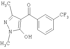 Стадия 2: 4-(4-трифторметил-2-метилсульфонилбензоил)-5-гидрокси-1-этил-3-метилпиразол. 1,27 г (3,4 ммоля) 1-этил-3-метил-5-пиразолил-4-трифторметил-2-метилсульфонилбензоата, 2 капли ацетонциангидрина и 0,8 мл (5,8 ммолей) NEt3 растворяли в 80 мл СН3CN и перемешивали в течение ночи при комнатной температуре. Затем реакционную смесь полностью упаривали, смешивали с водой и подкислили 2 N раствором HCl. Выпавший продукт отфильтровывали и перекристаллизовывали из этанола. Получали 4-(4-трифторметил-2-метилсульфонилбензоил)-5-гидрокси-1-этил-3-метилпиразол в виде желтоватого масла.