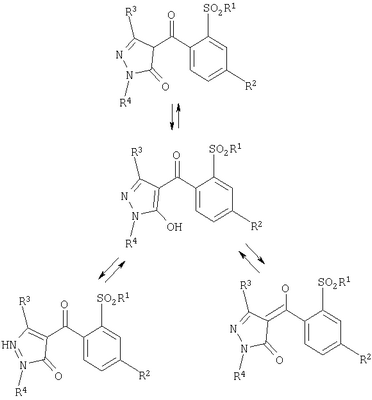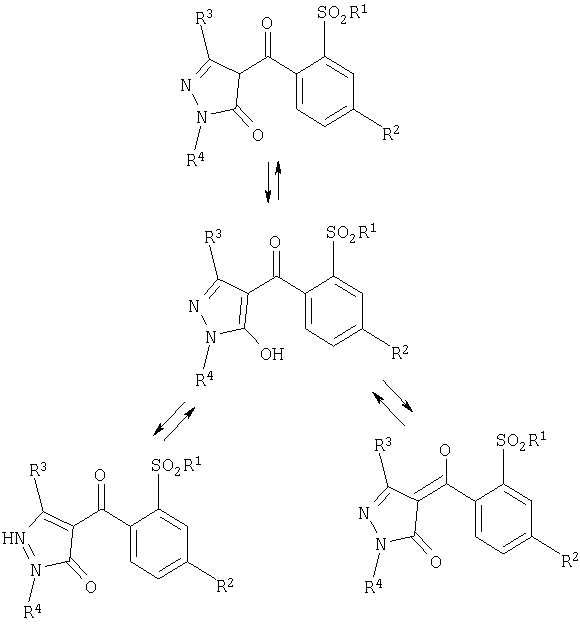 Для случая, когда R5 означает водород, соединения формулы (I) согласно данному изобретению в зависимости от внешних условий, таких как растворитель и величина рН, могут появляться в различных таутомерных структурах: