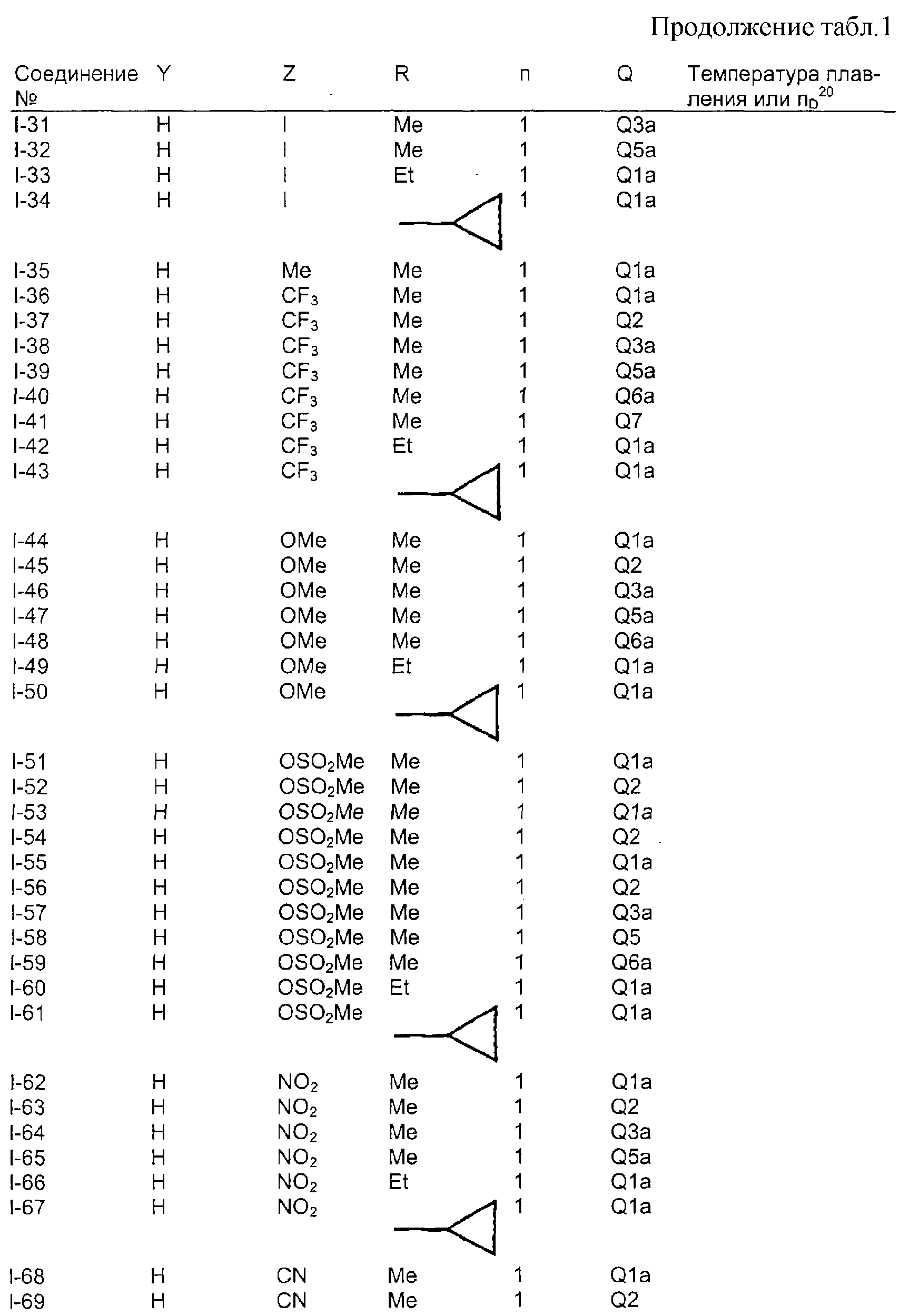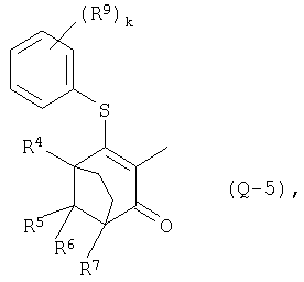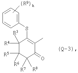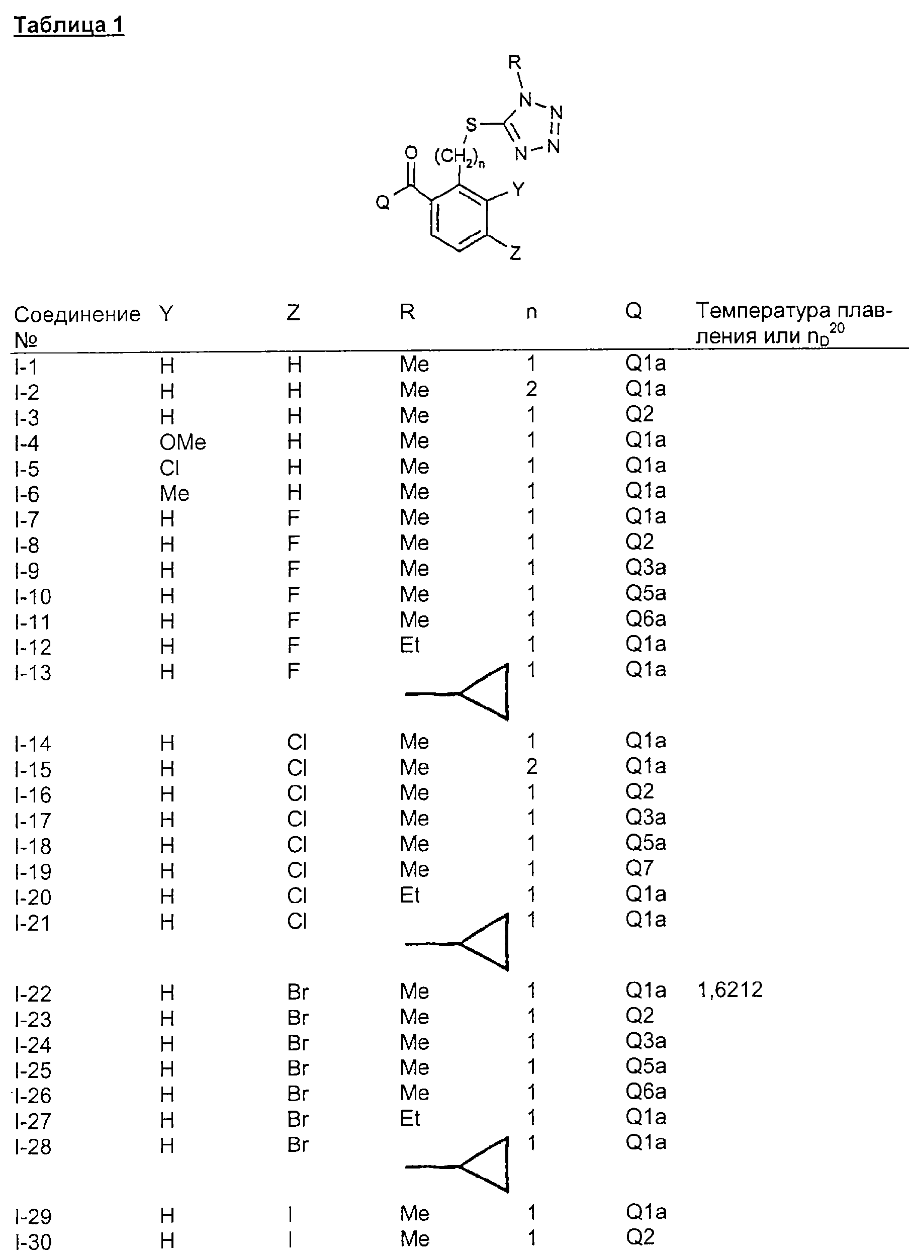 Настоящее изобретение относится к новым производным тетразола, к способам их получения, к их использованию в качестве гербицидов и к содержащим их новым гербицидным композициям, предназначенным для использования на рисовых полях. Известно, что некоторые типы производных тетразола обнаруживают гербицидную активность (см. публикации патентных заявок Японии №12275/1999, №21280/1999 и др.). Кроме того, известно, что некоторые типы гетероциклических производных обладают гербицидной активностью (см. патент США №5834402, №5846906, DE-A-19846792, WO 99/10327 и др.). Теперь обнаружены новые производные тетразола формулы (I) где R1 означает галоген, метил, этил, галогенметил, метоксил, этоксил, С1-2-галогеналкоксил, метилтиоил, этилтиоил, С1-3-алкилсульфонил, метилсульфонилоксил, этилсульфонилоксил, нитро- или цианогруппу, R2 означает C1-6-алкил или С3-6-циклоалкил, который необязательно может содержать в качестве заместителей галоген или C1-3-алкил, или означает С1-4-галогеналкил, C2-6-алкенил или фенил, который необязательно может содержать в качестве заместителей галоген, С1-3-алкил, С1-2-галогеналкил или нитрогруппу, m равно 0, 1 или 2, и два заместителя R1 могут быть одинаковыми или разными, если m равно 2, то n равно 1 или 2, Q означает следующие группы или где R3, R4, R5, R6, R7 и R8 являются одинаковыми или разными, и каждая из них означает атом водорода или метил, R9 означает атом водорода, галоген, C1-3-алкил, галогенметил, метоксил или нитро-группу, R10 означает С1-6-алкил, R11 означает галоген k равно 1 или 2. Соединения формулы (I), соответствующие настоящему изобретению, можно получить способом, в котором а) в случае получения соединений формулы (I), где Q означает группы (Q-1) или (Q-2): соединения формулы (II) где R1, R2, m и n являются такими, как определено выше, и Т1 означает одну из следующих групп или где R3, R4, R5, R6, R7 и R8 являются такими, как определено выше, вводят в реакцию перегруппировки в присутствии инертных растворителей и, если это является подходящим, в присутствии основания и цианида, и, если это является подходящим, в присутствии межфазного катализатора, или b) в случае получения соединений формулы (I), где Q означает группы (Q-6) или (Q-7) и в указанных группах R11 означает хлор или бром: соединения формулы (Ib) где R1, R2, m и n являются такими, как определено выше, и Qb означает одну из следующих групп или где R3, R4, R5, R6, R7 и R8 являются такими, как определено выше, вводят в реакцию с галогенирующим реагентом в присутствии инертных растворителей, или с) в случае получения соединений формулы (I), где Q означает группы (Q-3), (Q-4) или (Q-5): соединения формулы (Ic) где R1, R2, m и n являются такими, как определено выше, и Qc означает одну из следующих групп или где R3, R4, R5, R6, R7 и R8 являются такими, как определено выше, R11c означает хлор или бром, вводят в реакцию с соединениями формулы (III)