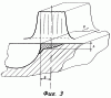 Для проведения лазерной термообработки полуформы устанавливают на координатном столе автоматического лазерного комплекса, концентрируют излучение лазера на рабочей кромке полуформы и прилегающей к ней зоне, после чего осуществляют обход контура кромки с заданной скоростью V согласно имеющейся программе. При этом обход контура кромки реализуется путем относительного перемещения полуформы или фокусирующей системы, осуществляемого с постоянной скоростью, задаваемой посредством устройств с ЧПУ (числовым программным управлением). Важнейшим условием получения оптимальной глубины и ширины упрочненного слоя является асимметричное расположение пятна фокусировки лазерного излучения относительно рабочей кромки (S) каждой полуформы и его смещение в направлении, противоположном полости полуформы (Фиг.3). Указанное смещение, как было установлено в результате экспериментов, рекомендуется выбирать в соответствии с формулой: