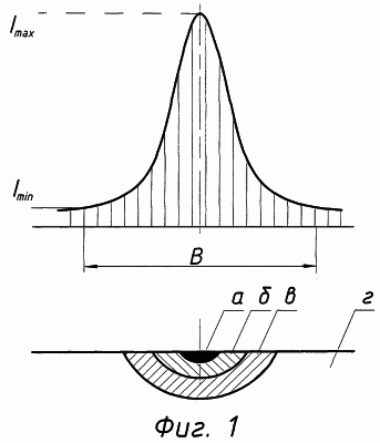Фиг.1 – диаграмма распределения интенсивности излучения и результаты его воздействия для однолучевых лазеров.