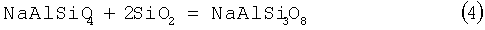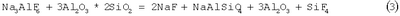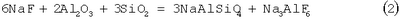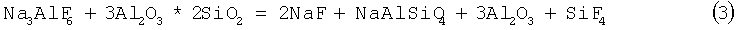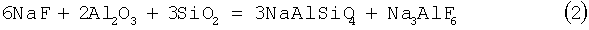 Если будет избыток огнеупорного материала и недостаток NaF, то нефелин реагирует с диоксидом кремния с образованием альбита NaAlSi3O8, который будет находиться в вязком стеклообразном расплавленном состоянии: