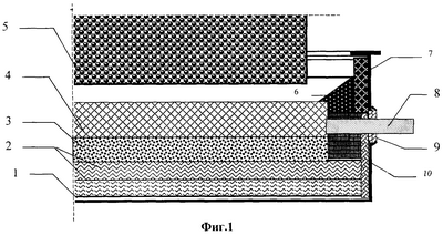 Футеровка катодной части алюминиевого электролизера состоит из выравнивающей подушки 1, двух слоев теплоизоляционного материала 2, огнеупорного слоя из барьерного материала 3, выполненного в виде порошка. Порошок имеет алюмосиликатный состав, в техническом решении используется шамот с содержанием окиси алюминия от 27 до 32%. Он обладает высокой реакционной способностью к компонентам электролита, проникающим через подовые секции, состоящие из угольных катодных блоков 4, уложенных на барьерный материал 3. Анод 5 помещен в электролизную ванну. Подовая масса 6 заполняет пространство между бортовой футеровкой 7 и угольными блоками 4. Катодный стержень 8 через уплотнение 9 соединен с угольным блоком 4. В нижней части электролизной ванны установлен компенсатор 10.