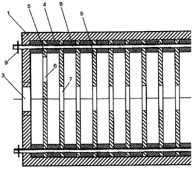 На чертеже представлен фронтальный разрез предлагаемого глушителя шума.