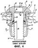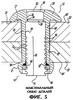 Втулка 12 выполнена с центральным сквозным высверленным отверстием, включающим отверстие диаметром D1 в корпусе 24, которое проходит по существу на всю длину корпуса 24 и сообщается вблизи головки 26 с проходящим через нее отверстием 30 меньшего диаметра Dh. В месте соединения отверстия 28 в корпусе с отверстием меньшего диаметра 30 головки выполнен кольцевой упорный заплечик 34. Отверстие 28 корпуса на своем противоположном внешнем торце оканчивается внутренним коническим участком 35, который служит для достижения указанной ниже цели. Следует отметить, что образующая конусной поверхности конусного участка 35 проходит к заднему (внешнему) торцу примерно через половину толщины корпуса 24 втулки.