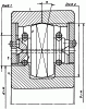 Поставленные цели и технический эффект предлагаемого изобретения достигается за счет того, что промежуточное звено представляет собой жесткое торовое кольцо, которое выполнено увеличенным по отношению к расчетному меньшему диаметру ступеней ролика, а дорожки качения под жесткое торовое кольцо выполнены как на внутреннем кольце подшипника, так и на цилиндрических участках меньших диаметров ступеней ролика.
