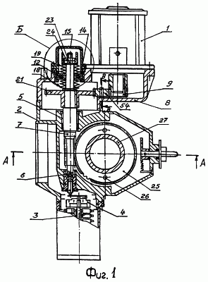 На выходном валу 27 выполнены выступы 51 для взаимодействия со шпинделем или бугельным узлом запорного органа арматуры.