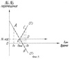 Удобно пояснить работу ИДК с помощью фиг.5, где по оси ординат отложены величины координат перемещения, полученные от первой считывающей головкой, т.е. N1i и второй головкой N2i, а по оси абсцисс время измерения tиз. Предположим, что в точке А начинается движение Риз – 3. На сумматоре будут высвечиваться N1i. В точке О, соответствующей времени tокас произошло касание щупа с измеряемой поверхностью и сумматор выдает величину N10. После касания щупа Риз- 3 продолжает движение в том же направлении, и первая головка будет давать величины перемещения N1iкac, численные значения которых будут укладываться на прямой ОВ (они условно обозначены кружками), а численные величины перемещения от второй головки N2iкac на прямой ОС (треугольниками). Тогда на сумматоре «С» – 20 будут отражаться величины Niкас: