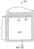 На фиг.4а показан вид в перспективе нижней и боковых сторон массива 103 микрозеркал, изображенного на фиг.3. Согласно фиг.4а, разделительные опорные рамы 210 микрозеркал 202 образуют полости под зеркальными пластинами 204. Эти полости обеспечивают место для отклонения вниз зеркальных пластин 204, а также обеспечивают большие области под зеркальными пластинами 204 для размещения второго слоя 104 с электродами 126 и/или третьего слоя с управляющей схемой 106. На фиг.4b показан вид в перспективе, детализирующий одно зеркало 202 массива 103 зеркал, изображенного на фиг.4а.