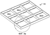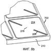 На фиг.6а показан вид снизу массива 103 микрозеркал, содержащего девять микрозеркал с 202-1 по 202-9, изображенного на фиг.3-5. На фиг.6а показана нижняя сторона зеркальных пластин 204, а также нижние стороны разделительных опорных рам 210, торсионые пружины и соединители. Во многих вариантах осуществления, область под зеркальными пластинами 204 достаточно велика для обеспечения оптимальной конструкции и размещения электродов 126 и управляющей схемы 106 и обеспечивает пространство для размещения возможного посадочного конца зеркала. На фиг.6b показан вид в перспективе, детализирующий одно зеркало 202 массива 103 зеркал, изображенного на фиг.6а.